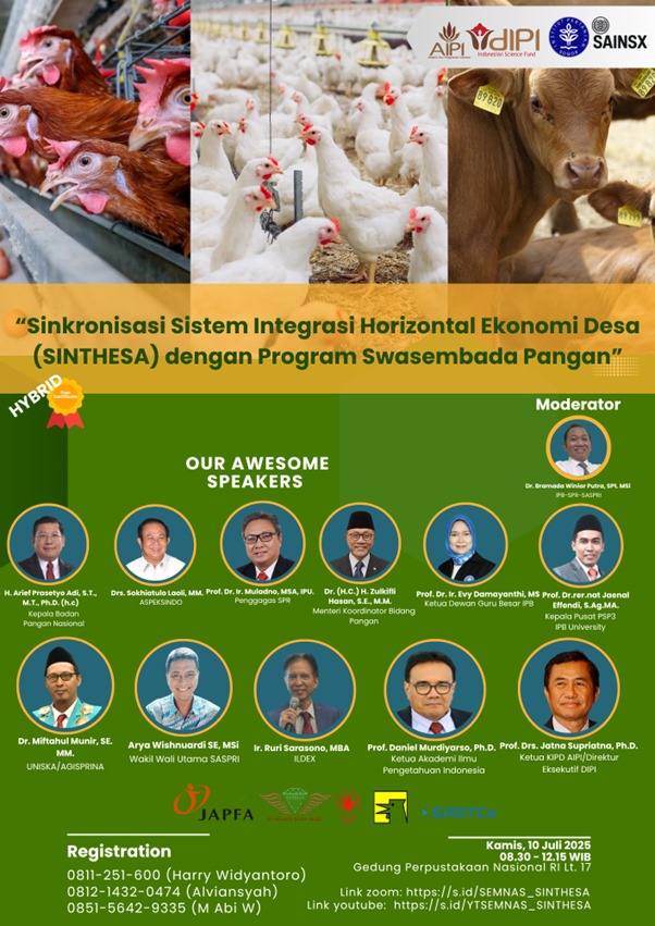 Prof. Muladno-Dr. Bramada (Narasumber & Moderator) dalam Seminar Nasional SINTHESA: Dorong Integrasi Ekonomi Desa Menuju Swasembada Pangan oleh AIPI