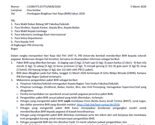 Bingkisan Hari Raya (BHR) Fapet IPB 20266 March 2026 Yth. Dosen dan Staff DIPTP Berikut disampaikan informasi… https://iptp-fapet.ipb.ac.id/wp-content/uploads/2026/03/BHR-2026.png 641 624 Sigid Prabowo https://iptp-fapet.ipb.ac.id/wp-content/uploads/2021/08/Logo-IPB-x-IPTP-100px.png Sigid Prabowo2026-03-06 08:00:532026-03-06 08:00:57Bingkisan Hari Raya (BHR) Fapet IPB 2026