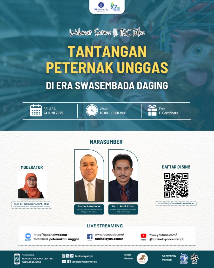 Cari tahu jawabannya dengan mengikuti 𝐖𝐞𝐛𝐢𝐧𝐚𝐫 𝐒𝐞𝐫𝐢𝐞𝐬 #𝐓𝐍𝐂𝐓𝐚𝐥𝐤𝐬𝐄𝟏𝟏 “𝐓𝐚𝐧𝐭𝐚𝐧𝐠𝐚𝐧 𝐏𝐞𝐭𝐞𝐫𝐧𝐚𝐤 𝐔𝐧𝐠𝐠𝐚𝐬 𝐝𝐢 𝐄𝐫𝐚 𝐒𝐰𝐚𝐬𝐞𝐦𝐛𝐚𝐝𝐚 𝐃𝐚𝐠𝐢𝐧𝐠” yang diadakan oleh Tani dan Nelayan Center IPB University.