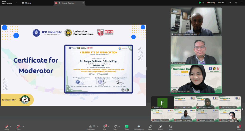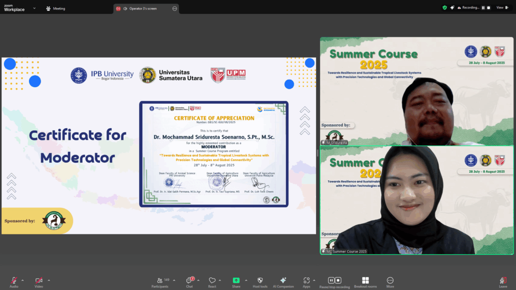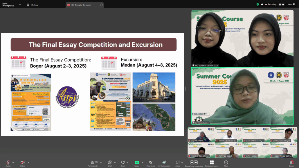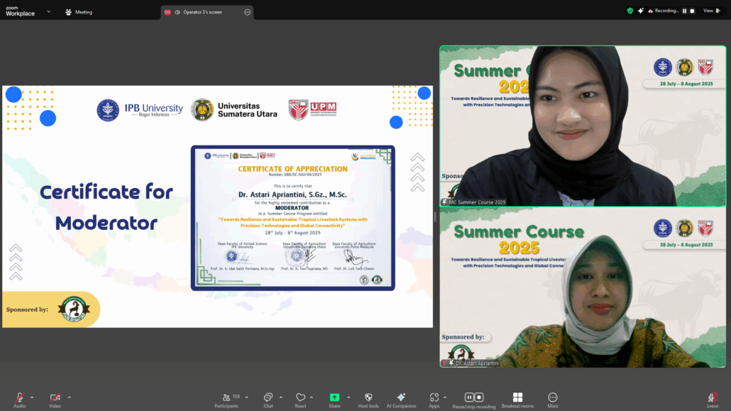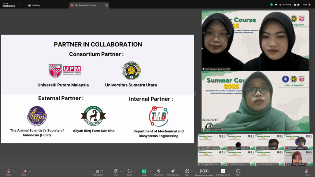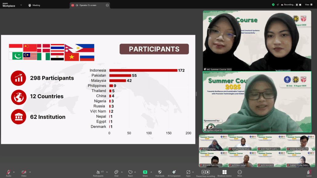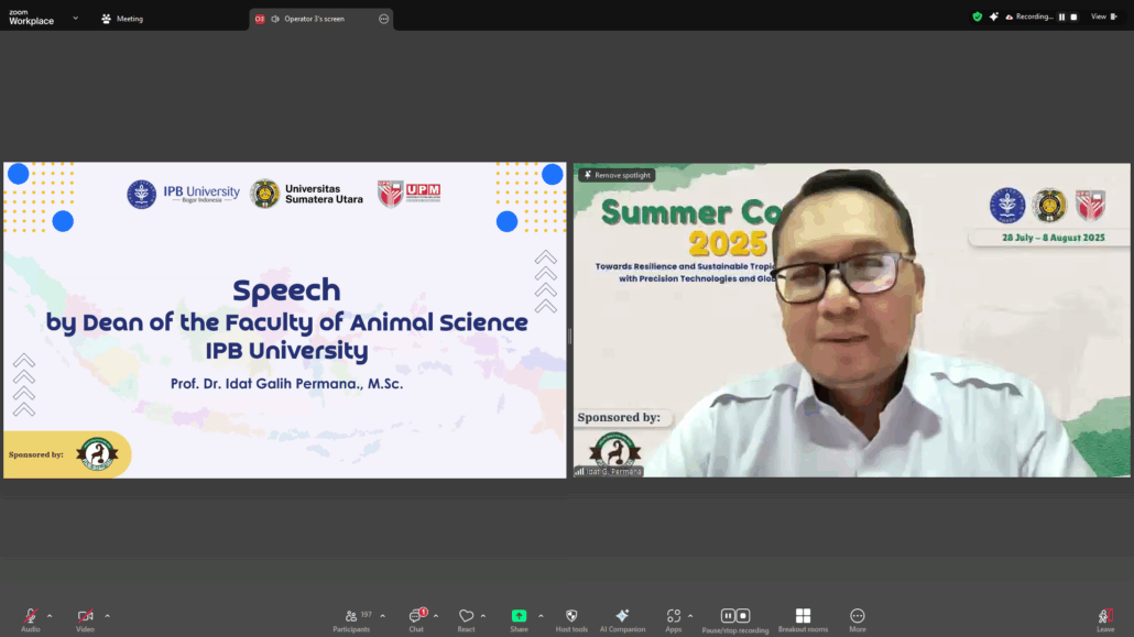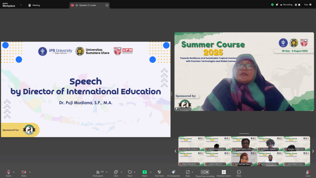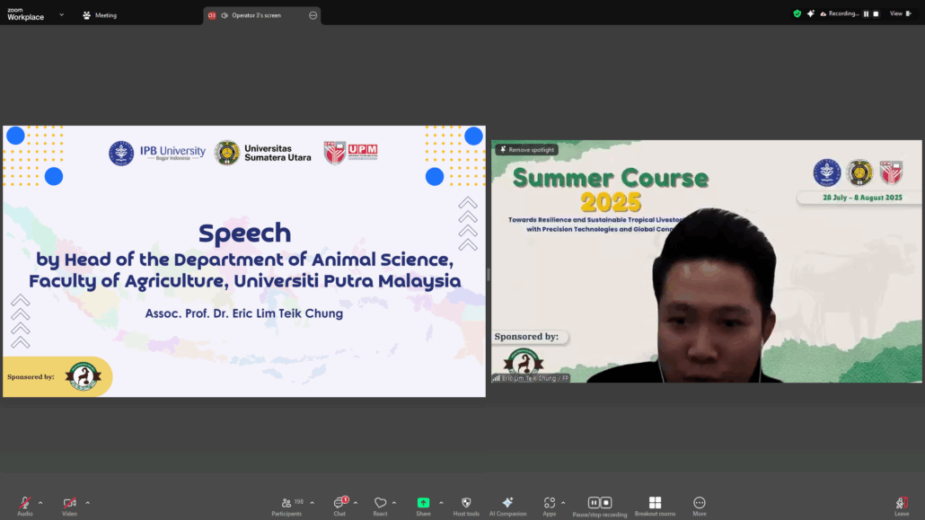 Bogor, 28 July 2025 – The Department of Animal Production Technology (APT), Faculty of Animal Science, IPB University, together with the Faculty of Agriculture, Universitas Sumatera Utara (USU), and the Faculty of Agriculture, University Putra Malaysia (UPM), officially launched the International Summer Course 2025. Carrying the theme “Towards Resilience and Sustainable Tropical Livestock Systems with Precision Technologies and Global University Collaboration,” this program aims to build a strong network of future experts in tropical livestock production.