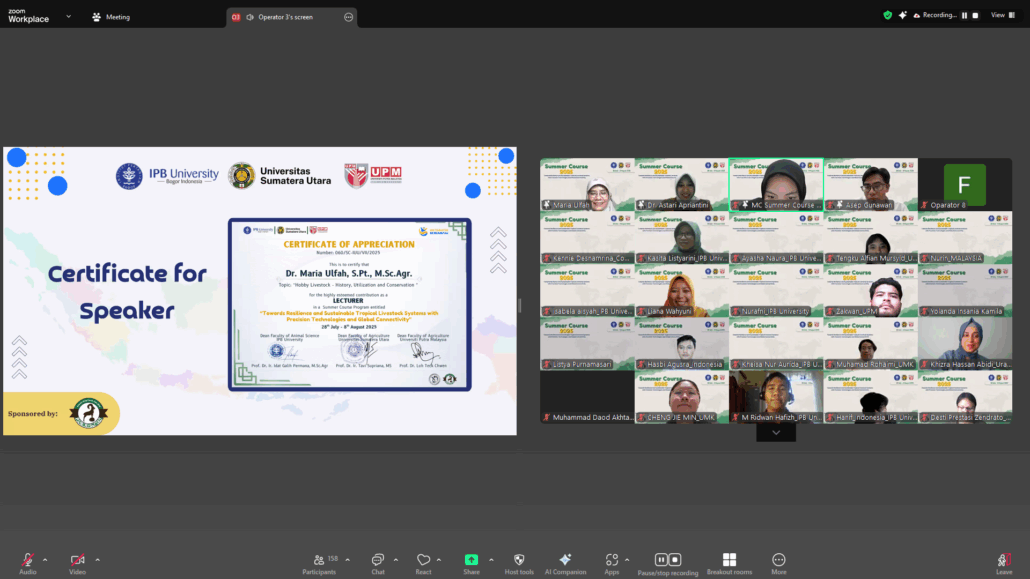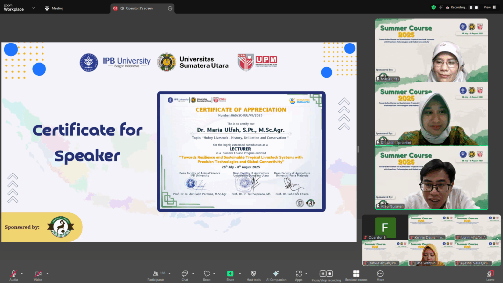 - Dr. Maria Ulfah (IPB University, Indonesia) discussed “History, Utilization, and Conservation of Hobby Livestock,” highlighting conservation strategies and the economic potential of hobby animals.