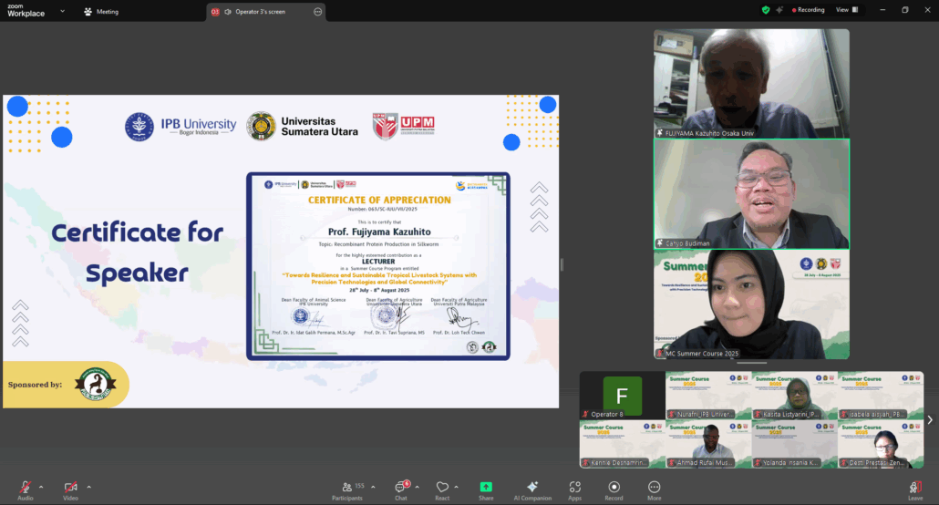 - Prof. Fujiyama Kazuhito (Osaka University, Japan) delivered insights on “Recombinant Protein Production in Silkworms,” demonstrating biotechnological innovations with potential applications in animal health and nutrition.