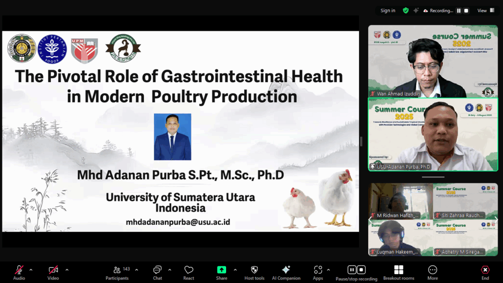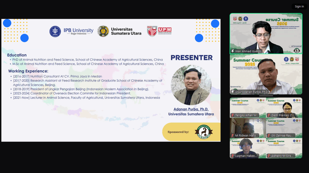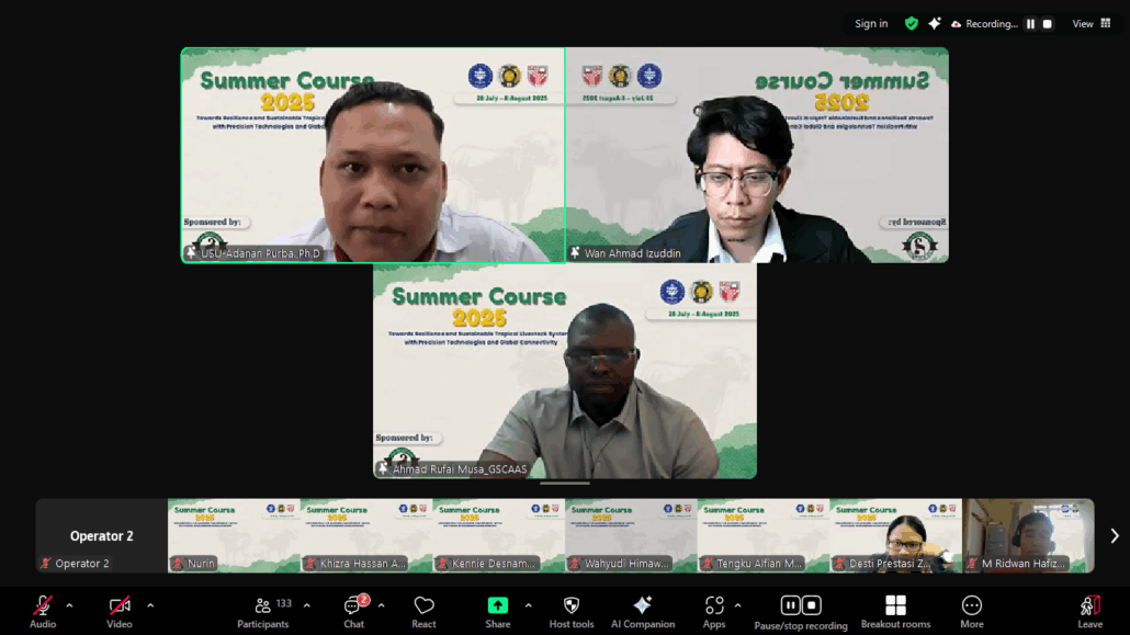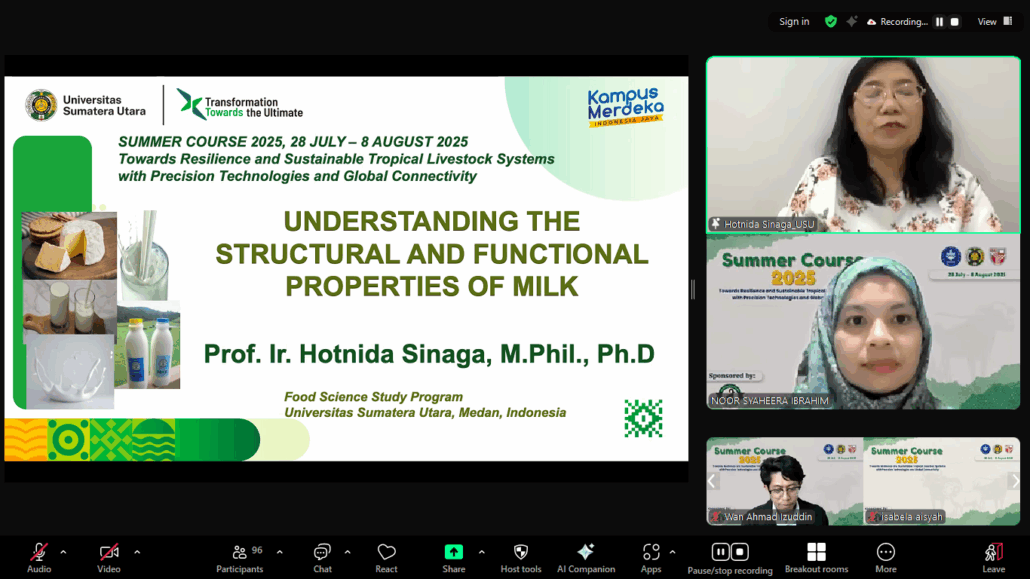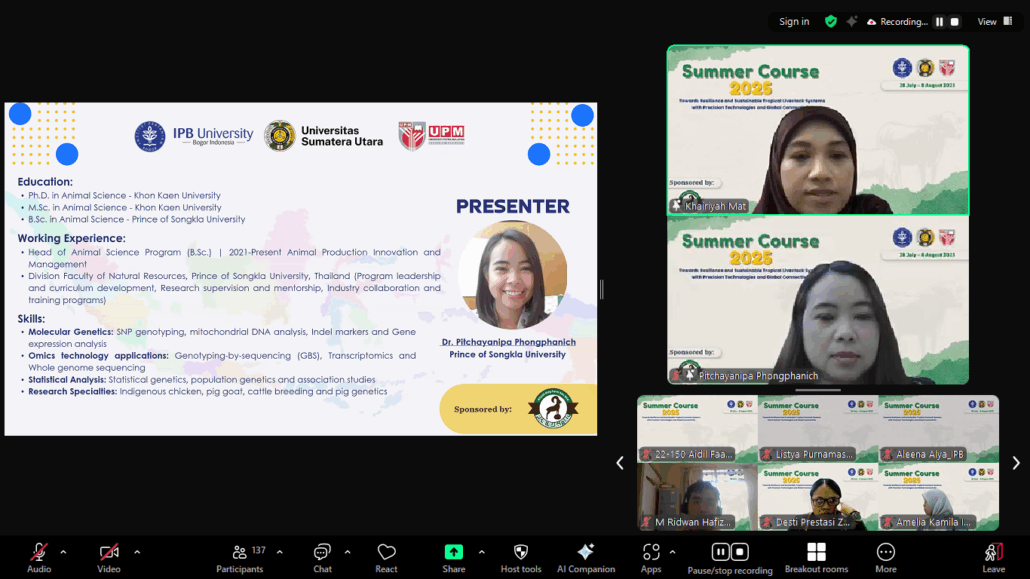 Bogor, Indonesia – The third day of the Summer Course 2025 (30/7) pushed the boundaries of tropical livestock science with a series of powerful lectures that connected animal health, cutting-edge “omics” technologies, dairy innovation, and advanced biotechnology applications in agriculture and human health. The program, organized by IPB University’s Department of Animal Production and Technology, in collaboration with Universitas Sumatera Utara (USU) and University Putra Malaysia (UPM), continued to foster a global academic exchange, attracting 298 participants from 62 institutions across 12 countries.