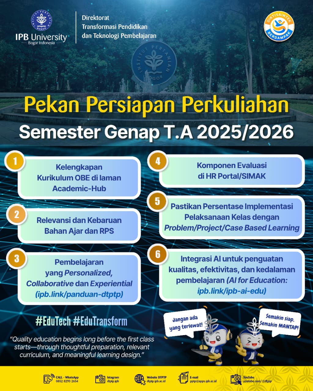 Bersama kita wujudkan pembelajaran IPB yang transformatif dan berdampak.