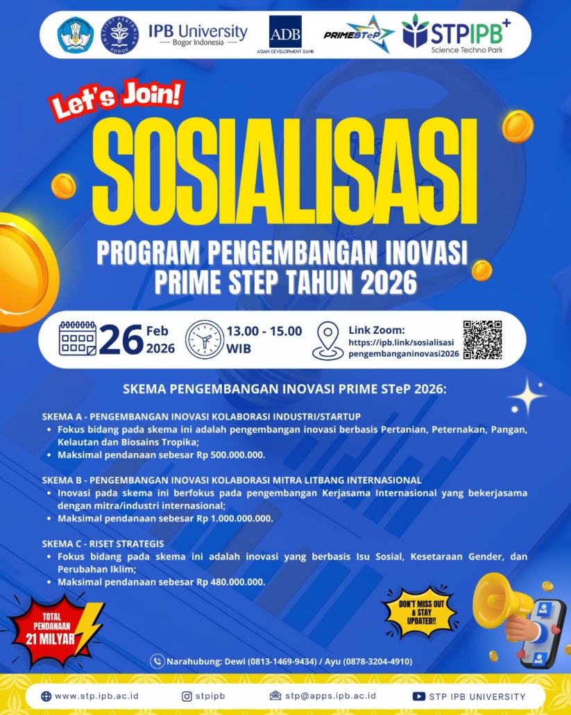 📌 Persiapkan ide dan proposal Anda untuk berpartisipasi dalam Program Pengembangan Inovasi PRIME STeP 2026 dan bersiaplah menjadi bagian dari perjalanan inovasi yang berdampak.